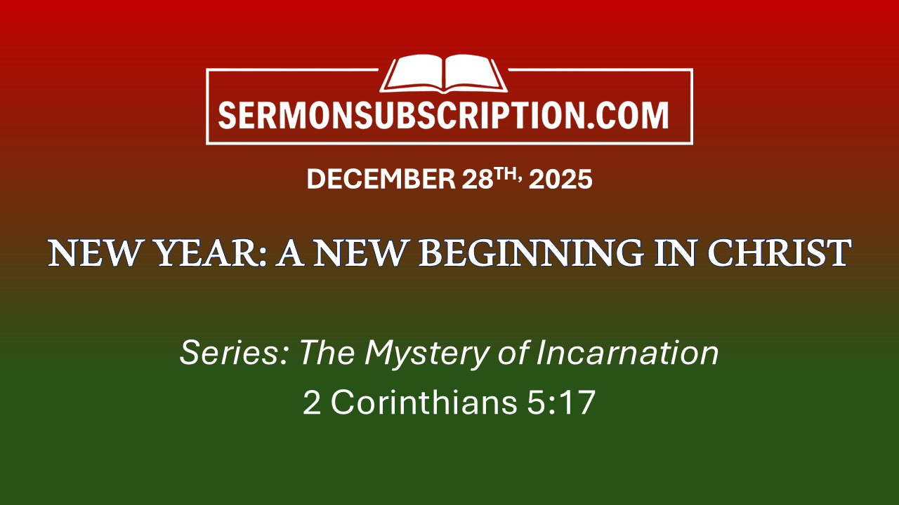 December 28, 2025: "NEW YEAR: A NEW BEGINNING IN CHRIST"SERIES: The Mystery of IncarnationDec 22, 2025∙ Paid11ShareTITLE: "NEW YEAR: A NEW BEGINNING IN CHRIST"Main Scripture: 2 Corinthians 5:171. A New Creation (v. 17a)2. A New Condition (v. 17b)3. A New Commitment4. A New CalendarFull Manuscript Sermon Below for Paid Subscribers!Continue reading this post for free, courtesy of Barry Davis.Claim my free postOr purchase a paid subscription.Previous