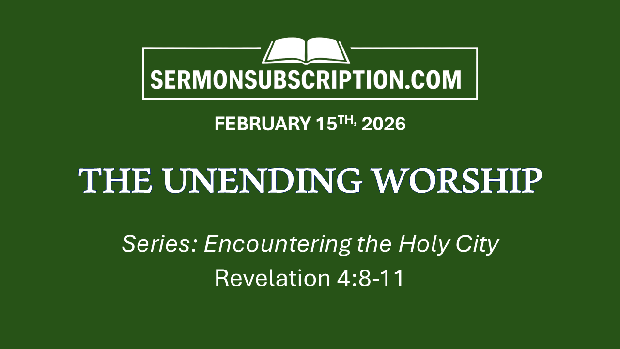 February 15, 2026: "THE UNENDING WORSHIP"SERIES: Encountering the Holy CityFeb 09, 2026∙ PaidShareTITLE: “THE UNENDING WORSHIP” Main Scripture: Revelation 4:8-111. The Perpetual Proclamation (v. 8) - Day and night they never stop saying2. The Profound Purpose (v. 9-10a) - Giving glory, honor, and thanks3. The Prostrate Position (v. 10b) - They lay their crowns before the throne4. The Proper Praise (v. 11) - “You are worthy, our Lord and God”Full Manuscript Sermon Below for Paid Subscribers!Continue reading this post for free, courtesy of Barry Davis.Claim my free postOr purchase a paid subscription.PreviousNext