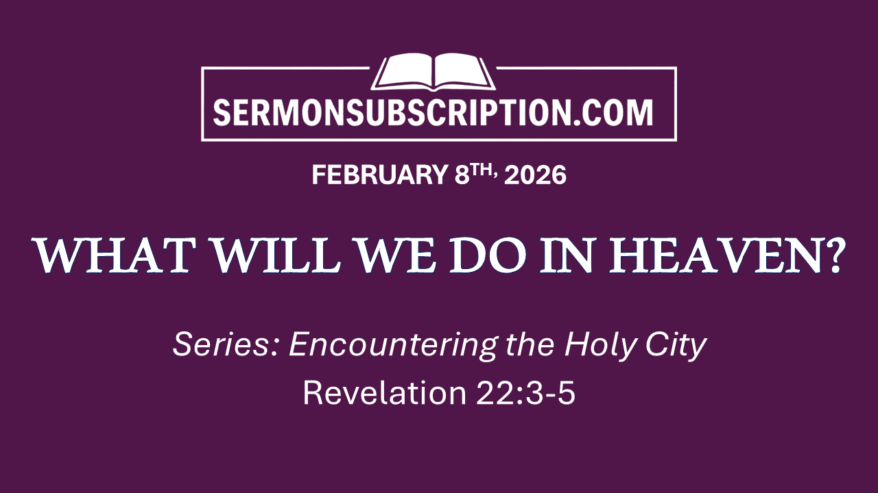 February 8, 2026: "WHAT WILL WE DO IN HEAVEN?"SERIES: Encountering the Holy CityFeb 02, 2026∙ Paid4ShareTITLE: “WHAT WILL WE DO IN HEAVEN?” Main Scripture: Revelation 22:3-51. Serving Without Ceasing (v. 3) - “His servants will serve him”2. Seeing Without Concealment (v. 4) - “They will see his face”3. Shining Without Competition (v. 5a) - “They will not need the light of a lamp”4. Sovereign Without Conclusion (v. 5b) - “They will reign for ever and ever”Full Manuscript Sermon Below for Paid Subscribers!Continue reading this post for free, courtesy of Barry Davis.Claim my free postOr purchase a paid subscription.PreviousNext