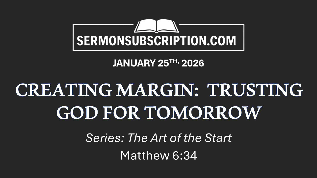 January 25, 2026: "CREATING MARGIN: TRUSTING GOD FOR TOMORROW"SERIES: The Art of the StartJan 19, 2026∙ Paid1ShareTITLE: "CREATING MARGIN: TRUSTING GOD FOR TOMORROW"Main Scripture: Matthew 6:341. Recognize Today’s Trouble is Enough (Deut. 33:25)2. Remember God’s Track Record (1 Sam. 7:12)3. Relinquish Control, Reclaim Peace (1 Pet. 5:7)4. Redesign Your Schedule with Sabbath Space (Mark 6:31)Full Manuscript Sermon Below for Paid Subscribers!Continue reading this post for free, courtesy of Barry Davis.Claim my free postOr purchase a paid subscription.Previous