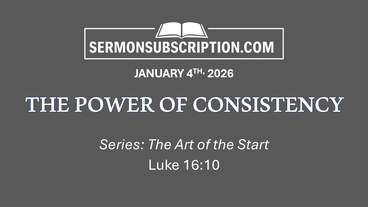 January 4, 2026: "THE POWER OF CONSISTENCY"SERIES: The Art of the StartDec 29, 2025∙ PaidShareTITLE: "THE POWER OF CONSISTENCY"Main Scripture: Luke 16:101. Faithfulness Begins in the Fragments (1 Cor. 4:2) 2. Faithfulness Builds Through the Boring (Gal. 6:9) 3. Faithfulness Flows from the Father (Lam. 3:22-23)4. Faithfulness Finishes What It Starts (Phil. 1:6)Full Manuscript Sermon Below for Paid Subscribers!Continue reading this post for free, courtesy of Barry Davis.Claim my free postOr purchase a paid subscription.Previous