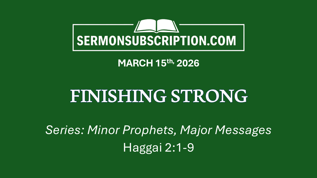 March 15, 2026: "FINISHING STRONG"SERIES: Minor Prophets, Major MessagesMar 09, 2026∙ Paid1ShareTITLE: “FINISHING STRONG” Main Scripture: Haggai 2:1-91. Fear Not When the Task Seems Too Small (vv. 1-3)2. Find Strength in God's Faithful Presence (vv. 4-5)3. Future Glory Will Exceed Former Achievements (vv. 6-9)4. Faithfulness Today Builds the Foundation for Tomorrow (Application)Full Manuscript Sermon Below for Paid Subscribers!Continue reading this post for free, courtesy of Barry Davis.Claim my free postOr purchase a paid subscription.Previous