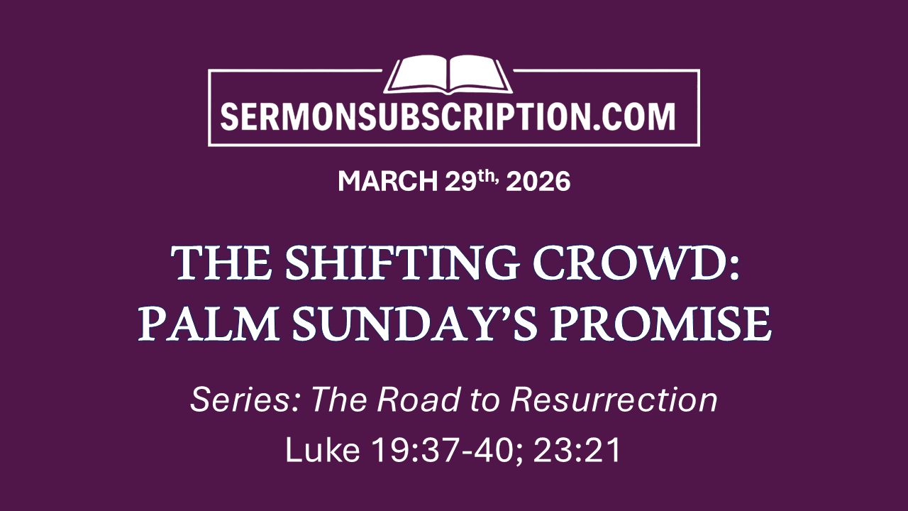 March 29, 2026: "THE SHIFTING CROWD: PALM SUNDAY'S PROMISE"SERIES: The Road to ResurrectionMar 23, 2026∙ PaidShareTITLE: “THE SHIFTING CROWD: PALM SUNDAY’S PROMISE” Main Scripture: Luke 19:37-40; 23:211. Praise Can Be Passionate but Not Permanent (19:37-38)2. Pressure from Culture Can Compromise Our Convictions (23:21)3. Popularity with People Proves Nothing About Truth (19:39-40)4. Personal Commitment Must Exceed Public Opinion (Application)Full Manuscript Sermon Below for Paid Subscribers!Continue reading this post for free, courtesy of Barry Davis.Claim my free postOr purchase a paid subscription.Previous