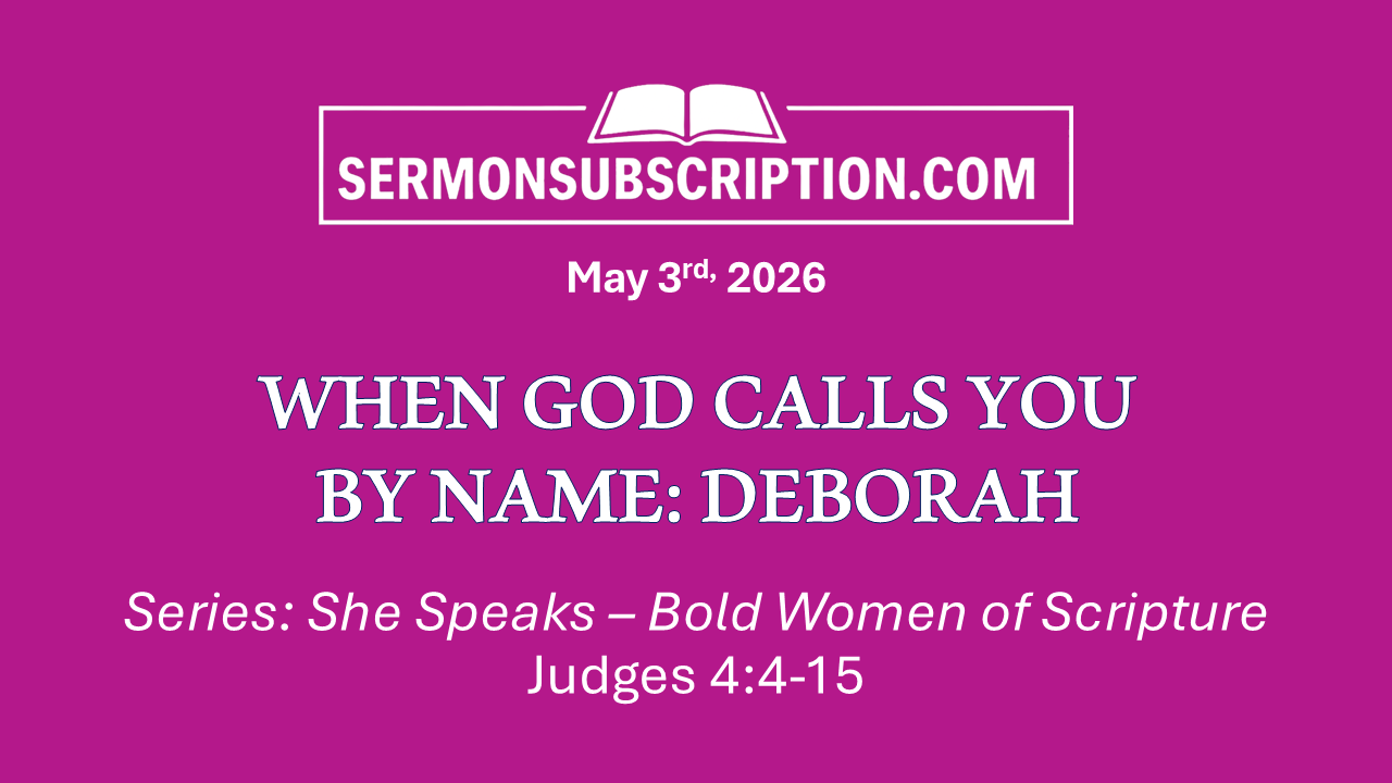 May 3rd, 2026: "WHEN GOD CALLS YOU BY NAME: DEBORAH"SERIES: She Speaks — Bold Women of ScriptureApr 27, 2026∙ PaidShareTITLE: “WHEN GOD CALLS YOU BY NAME: DEBORAH” Main Scripture: Judges 4:4-151. Destined to Lead (vv. 4–5) 2. Daring to Speak (vv. 6–8)3. Determined to Go (vv. 9–10) 4. Declaring the Victory(vv. 14–15)Full Manuscript Sermon Below for Paid Subscribers!Continue reading this post for free, courtesy of Barry Davis.Claim my free postOr purchase a paid subscription.Previous